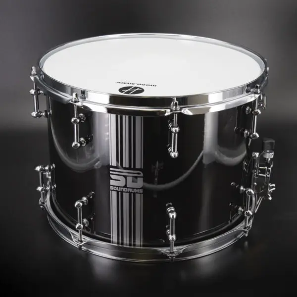 "C'est en 2023 que le pupitre de tambours/percussions de la musique de la Marine nationale, dernière musique de la Marine française, nous a demandé de créer pour eux les tambours et la grosse-caisse qui répondraient à leurs besoins musicaux et esthétiques. Les discrètes touches de rouge viennent rappeler le célèbre pompon qui orne les bérets des marins. Nous sommes heureux d'avoir eu l'honneur d'équiper cette belle formation en instruments mais également en accessoires, baudriers assortis (beige et rouge) et housses. Nous les remercions chaleureusement !"